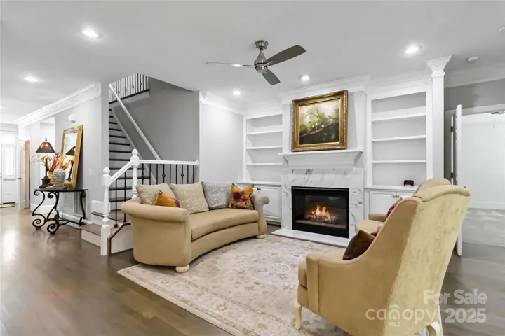 This is a must see beautiful totally updated townhome. Fabulous kitchen with beautiful cabinets, quartz counter tops, Wolf gas cooktop with a pot filler, double ovens, island and large stainless steel sink. Open floor plan with refinished hardwood floors, dining/flex space off family room with a wall of windows for natural sunlight. Freshly painted and updated light fixtures. Primary bedroom with a barn door to the the wonderful bathroom: double vanities with quartz counters, beautiful tiled large shower and 3 walk-in closets. Upstairs are 2 extremely large bedrooms with walk-in closets and private vanity areas with shared tub/shower. Spacious bonus room with a separate room that would be a perfect office or work out space with its own walk-in closet. Don't miss the oversized walk-in attic storage room. Brand new HVAC system installed in Sept. 2024. Enclosed spacious brick patio perfect for entertaining.