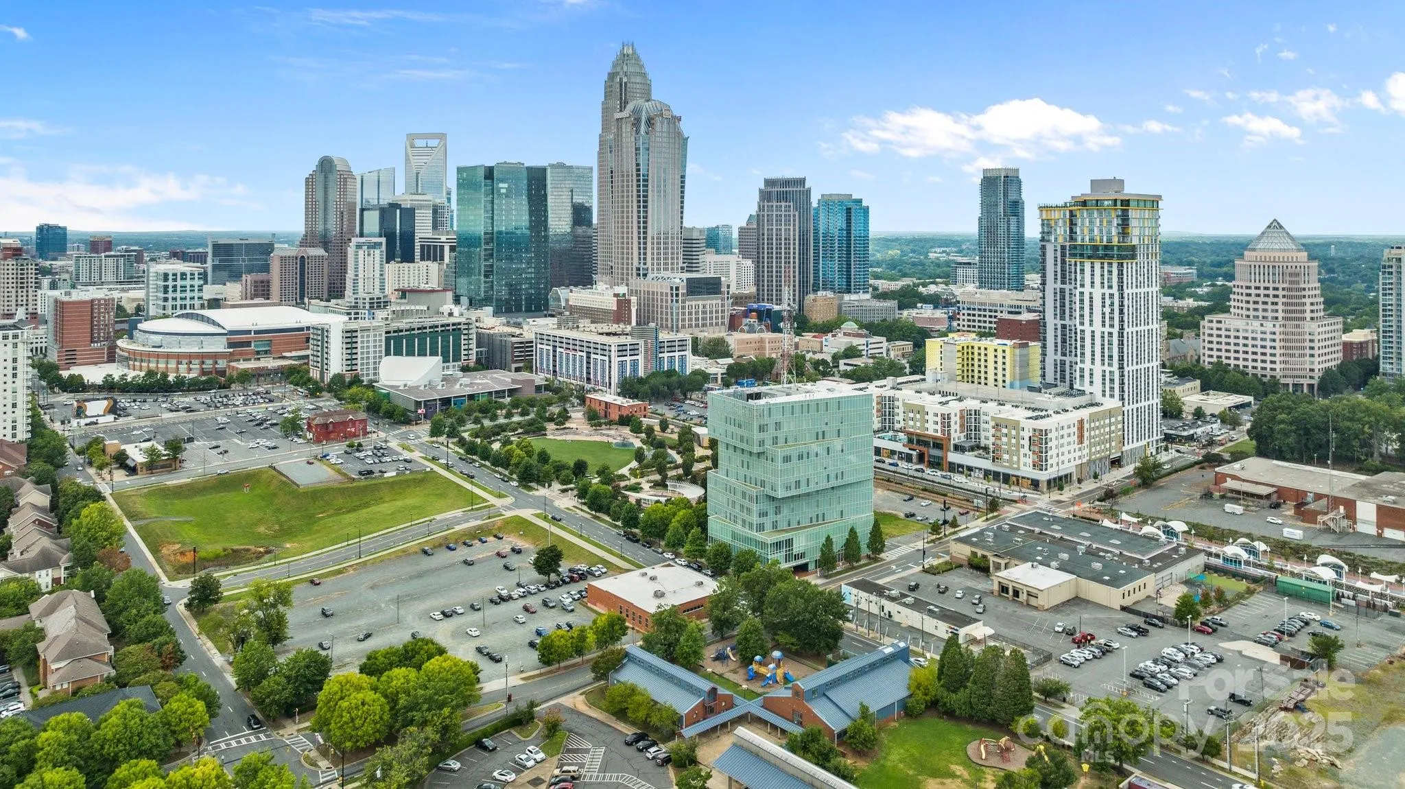 Experience the pinnacle of urban living in this stunning loft-style condo located in the vibrant heart of Uptown Charlotte's 1st Ward. This prime location is surrounded by a plethora of dining options, entertainment venues, and cultural attractions, including the Spectrum Center, Optimist Hall, and the 9th St Light Rail Station. This bright and airy residence boasts expansive windows that flood the space with natural light, creating an inviting atmosphere. The thoughtfully designed open floor plan features a spacious living area that enhances the sense of openness and comfort. Situated on the first floor, this unit offers convenience and easy access. The kitchen is equipped with ample cabinetry, along with a convenient computer nook for your work-from-home needs.The generously-sized bedroom features a walk-in closet providing plenty of storage. Enjoy controlled access to the building and parking garage, with water and sewer included in the HOA fees.