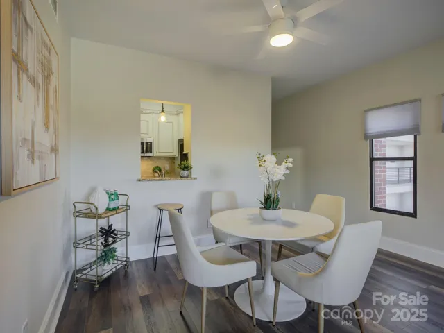 Gorgeous end unit condo in sought-after The Churchill complex in Uptown's Historic 4th Ward! FANTASTIC location within Uptown, so close to all the conveniences of this lovely, residential area of the city! Right around the corner from Harris Teeter, 4th Ward Park, boutiques, restaurants, Discovery Place, Charlotte sporting events, concerts, coffee shops and so much more! Beautifully and tastefully updated unit with unique privacy and natural light (no neighbors to the right or left)! Recently painted and custom blinds added throughout! En trend light fixtures! Spacious, open, light & bright. Enjoy our Carolina weather on the covered balcony with skyline AND park views or entertain guests on the expansive condominium patio! This open air complex is refreshing and one of a kind! Included is 1 spacious deeded garage parking spot and guest passes with year round use. Fantastic price adjustment!
