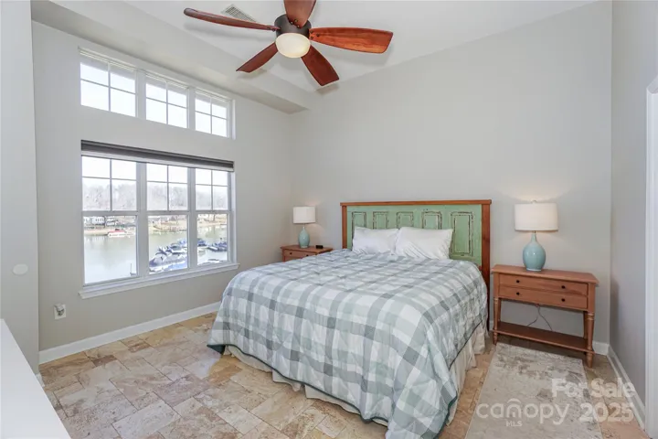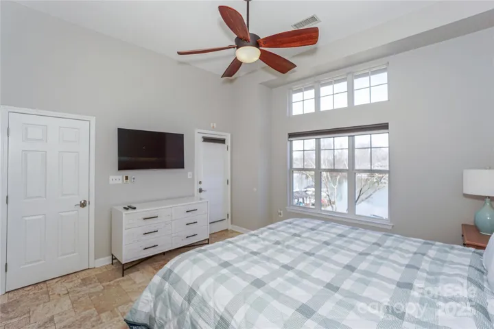 Optimally positioned within the community, this desirable end-unit penthouse offers breathtaking open water views and a serene, secluded atmosphere. This home features 3 bedrooms and 2.5 bathrooms (2 of which are ensuite) and 1337 sq ft. Inside, you will find an abundance of natural light pouring through large windows, which enhances the expansive water views and complements the soaring ceilings and open-concept living space. The master suite is a true highlight, with private waterfront balcony access, a spa-like bathroom featuring heated travertine tile floors, an extra-wide soaking tub, a walk-in shower, and an oversized walk-in closet. Neighborhood amenities, including a kayak launch, expansive lakeside lawn, boat tie-up, and community pool, elevate the lifestyle experience. With the recent price adjustment, this exceptional property is now even more accessible, offering tremendous value for a prime waterfront residence.