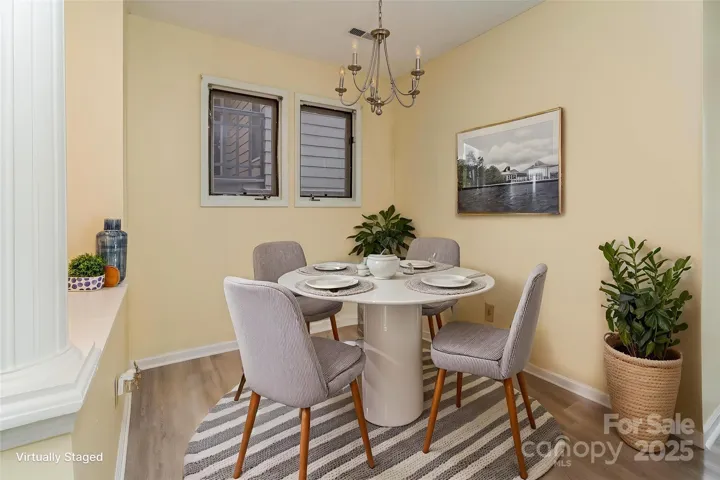 Enjoy living in the heart of historic Dilworth! This charming 2-bedroom, 1.5-bath condo offers peaceful courtyard views, mature trees, fountains, and easy access to the community pool — perfect for relaxing after a busy day. Inside, cozy up by the wood-burning fireplace, sip coffee on your private covered porch, and enjoy natural light streaming through large windows. Water is included in the HOA dues. Conveniently located close to Atrium/CMC, Uptown Charlotte, the Panthers Stadium, South Park, gyms, blocks to the new Pearl Development project, and the new Wake Forest Medical School. Extra Bonus - Atrium Health offers a convenient shuttle service with a stop nearby for quick access to area hospitals and provides transportation to ultimate destinations with or without stops along the way. Convenience all around! A true blend of charm, location, and everyday ease! Sellers are offering a $1000 credit in case the buyer would like a newer refrigerator.
