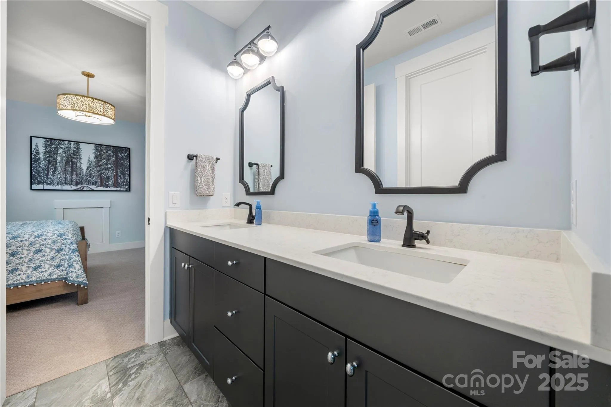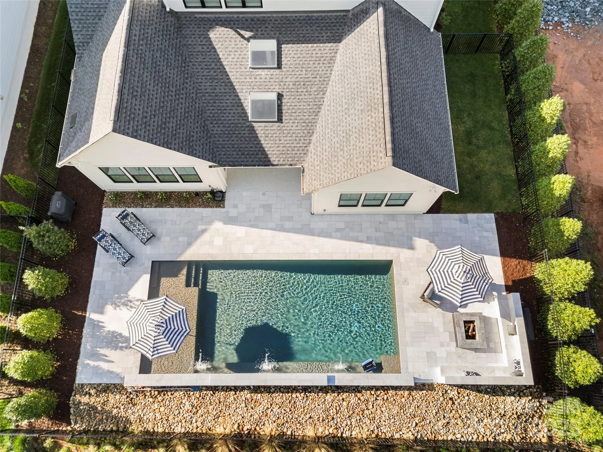 The main-level primary suite features a tray ceiling, custom accent wall & a walk-in closet. Ensuite bath is equipped w/a walk-in shower w/rain head, dual vanities & decorative tile flooring. Adjacent to the garage entry, find a drop zone alongside 1 of 2 laundry rooms. Kitchen features a 36” 6-burner gas range w/exhaust hood, Sub-Zero refrigerator, wall oven, granite counters & walk-in pantry. Adjoining living room has vaulted ceilings, gas fireplace & access to the covered back patio, perfect for indoor-outdoor living. Formal dining room, office & half bath complete the main level. Upstairs discover a versatile sitting room complemented by an additional half bath & 2nd laundry room. Upper level also includes a private guest suite w/full bath along w/2 additional bedrooms featuring a Jack-&-Jill full bath. Outside, enjoy a beautifully landscaped yard, complete with a gunite saltwater pool w/ travertine decking & built-in seating surrounding a wood-burning fire pit.