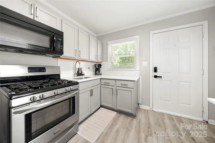 Step into this ranch-style home offering comfort, convenience & no HOA! The living room flows into the dining area, all unified by LVP flooring that extends through most of the main level. The updated kitchen boasts quartz countertops, a tile backsplash, gas range, & a laundry closet thoughtfully tucked away for convenience. The full bathroom features LVP flooring, an updated vanity & a shower/tub combination perfect for everyday use. Enjoy outdoor living in the fully fenced backyard (installed 2024), complete with a storage shed for all your extras. Whether relaxing or entertaining, this space is ready for your personal touch. Located just ~2 miles from Gibson Mill, ~1 mile from Downtown Concord, and with access to I-85, come see all this property has to offer. Key upgrades include: Roof replacement (2021) New water heater (2022) and furnace (2021) Upgraded Front Yard Drainage system & Added a Cleanout (Dec 2024)