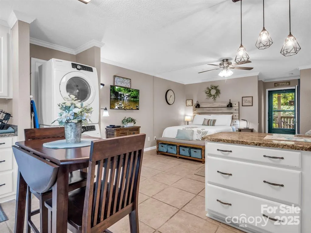 Chimney Rock State Park and Rumbling Bald beach will be reopening for the summer season! This is the perfect time to come back to Lake Lure and make new memories! This lovely lower-level end unit in the desirable Apple Valley Villas in Rumbling Bald on Lake Lure makes a great weekend getaway or investment property. This spacious studio apartment comes fully furnished and has an in-unit washer and dryer. All you have to bring is yourself! Sellers on this unit are motivated!